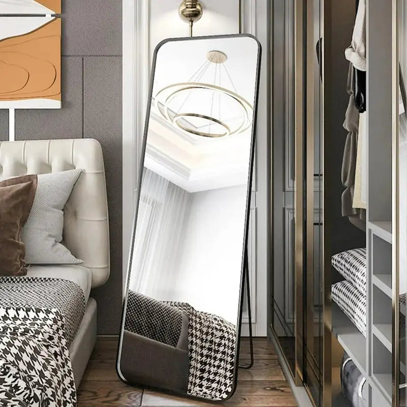 Refleja tu estilo con este elegante espejo de pie de diseño minimalista. Con marco negro fino y líneas modernas, aporta un aire sofisticado y versátil a cualquier estancia. Su formato vertical y amplio permite un reflejo completo, ideal para dormitorios, vestidores, recibidores o estudios de decoración.