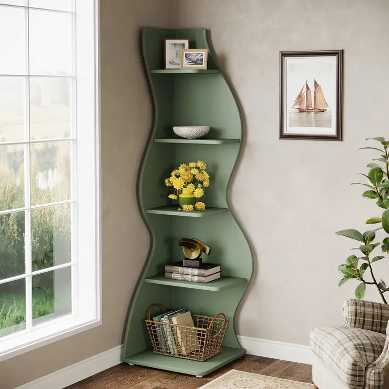 Estante Esquinero Ondulado Verde de 5 Niveles – Diseño Moderno