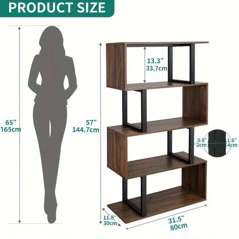 Dale un toque moderno y sofisticado a tu hogar con esta estantería de diseño en zigzag. Fabricada en madera de alta calidad con soportes metálicos negros, ofrece resistencia y estilo en un solo mueble. Con 4 amplios niveles, es ideal para organizar libros, plantas, adornos y objetos decorativos, aportando funcionalidad y estética a cualquier sala de estar, oficina o dormitorio.